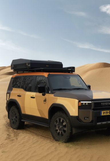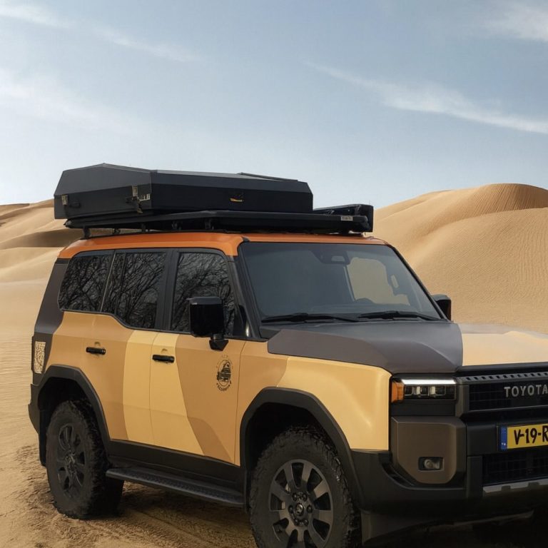 Voor wie de horizon nooit ver genoeg is. Onze volledig uitgeruste terreinwagen is gebouwd voor avontuur.  Perfect voor roadtrips door Scandinavië, de Alpen of de woestijn van Marokko.